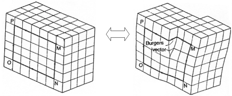* 금속의 결정체는 보통 원자나 원자면이 더 있거나 탈락되어 있는 불완전한 결정체임